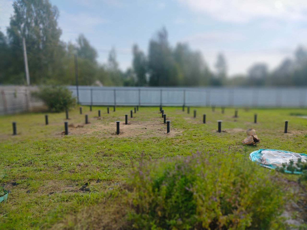 После установки свай на каждую из них были закреплены оголовки. Этот этап крайне важен, так как оголовки служат опорой для будущей обвязки фундамента. Правильная установка оголовков гарантирует, что дом будет иметь ровное и прочное основание.